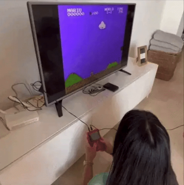 Konsolen kommer med en RetroPad för två spelare, så ni kan spela tillsammans. Med AV-utgångskabeln kan du koppla den till TV:n och spela på en större skärm, vilket gör det perfekt för familjespel och en bra möjlighet för barn att träna sina tänkande och logiska förmågor.