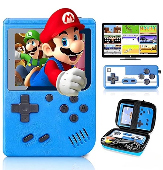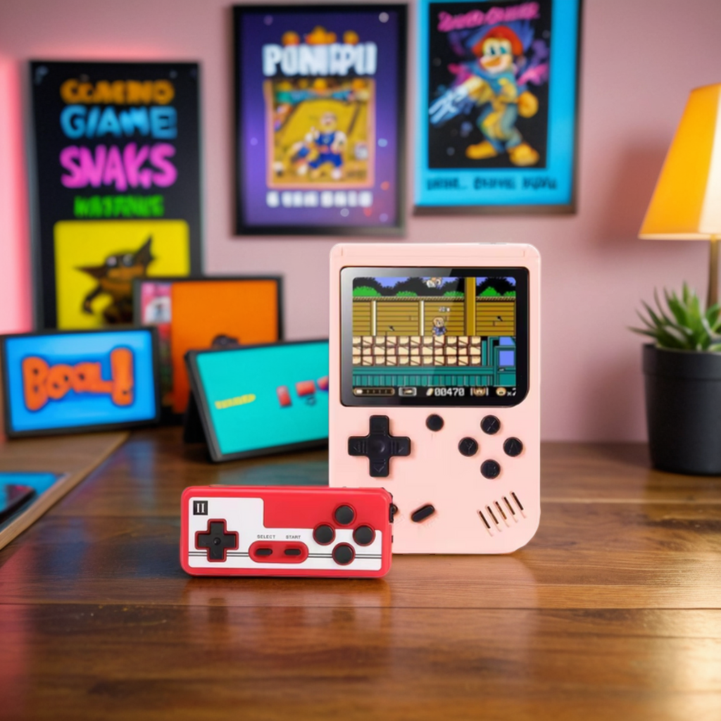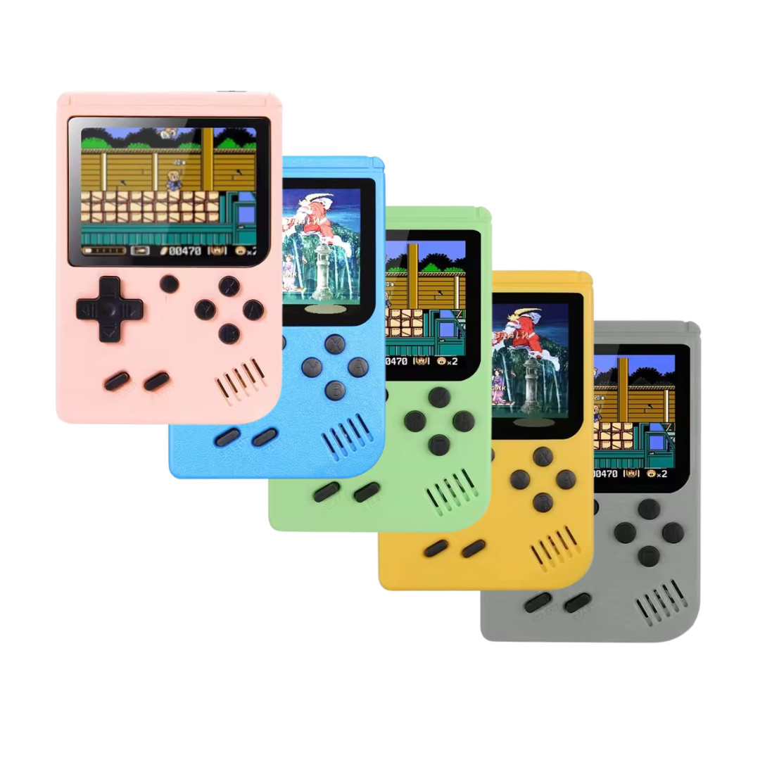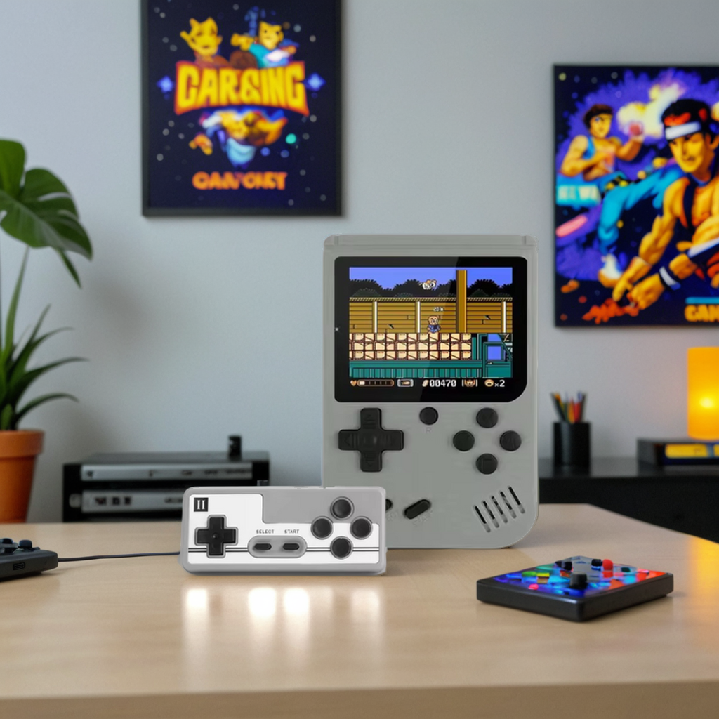 - Bärbar och stilren design: Den kompakta och lätta konstruktionen gör det enkelt att ta med konsolen var som helst. Perfekt för att njuta av klassiska spel när du reser, på flygplan, i bilen eller på fritiden.