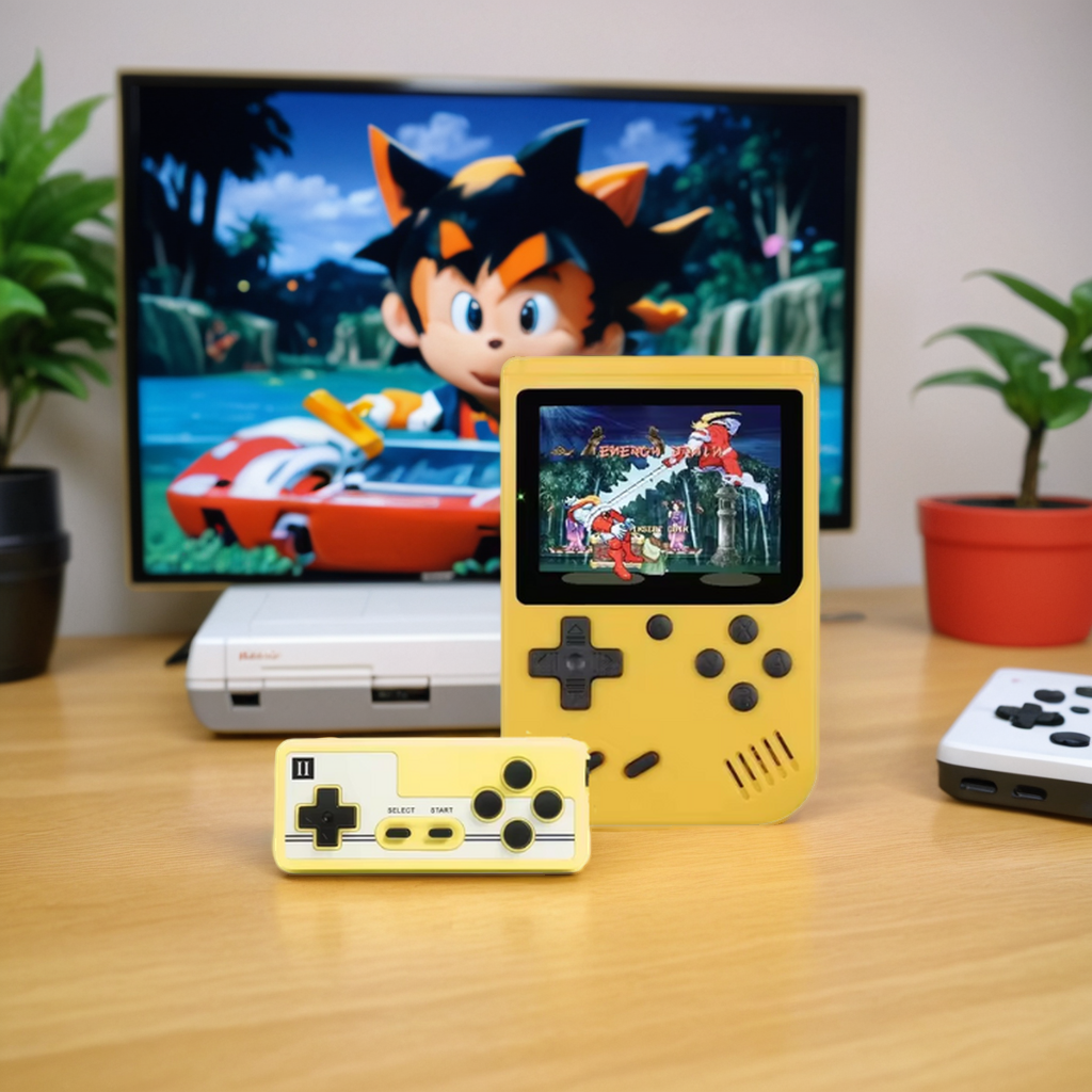 Den här kompakt designade spelkonsolen bjuder på 400 klassiska FC-spel, inklusive tidlösa favoriter som Super Mario och Contra. Ta ett steg tillbaka i tiden och upplev de roliga och spännande äventyren från barndomen – utan att behöva oroa dig för upprepning!